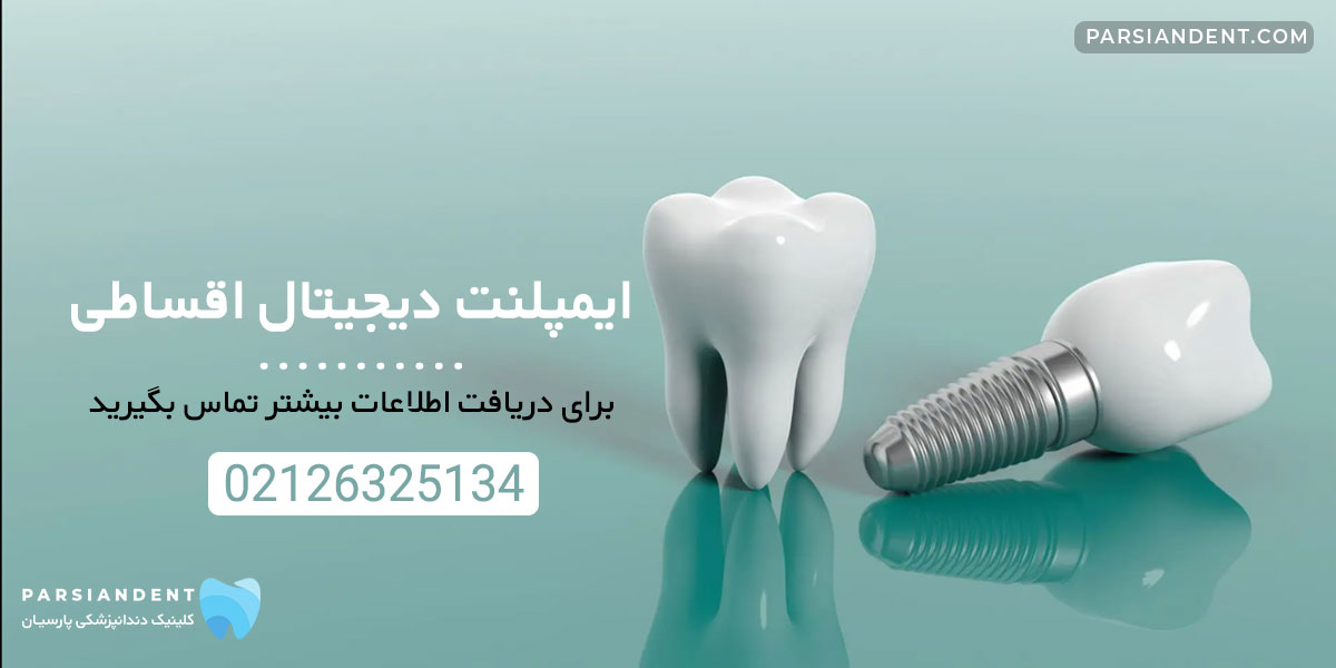 ایمپلنت دیجیتال اقساطی یکی از روش های مناسب برای ایمپلنت دندان ، داشتن لبخندی زیبا و بهبود عملکرد غذا خوردن برای بیماران است.کلینیک دندان پزشکی ایمپلنت دنت با داشتن بهترین متخصص های ایمپلنت دندان در تهران برای رفاه حال بیماران امکان پرداخت اقساطی هزینه ایمپلنت فوری را فرام نموده است برای دریافت اطلاعات بیشتر در مورد ایمپلنت دیجیتال اقساطی در تهران با شماره تماس در ارتباط باشید.